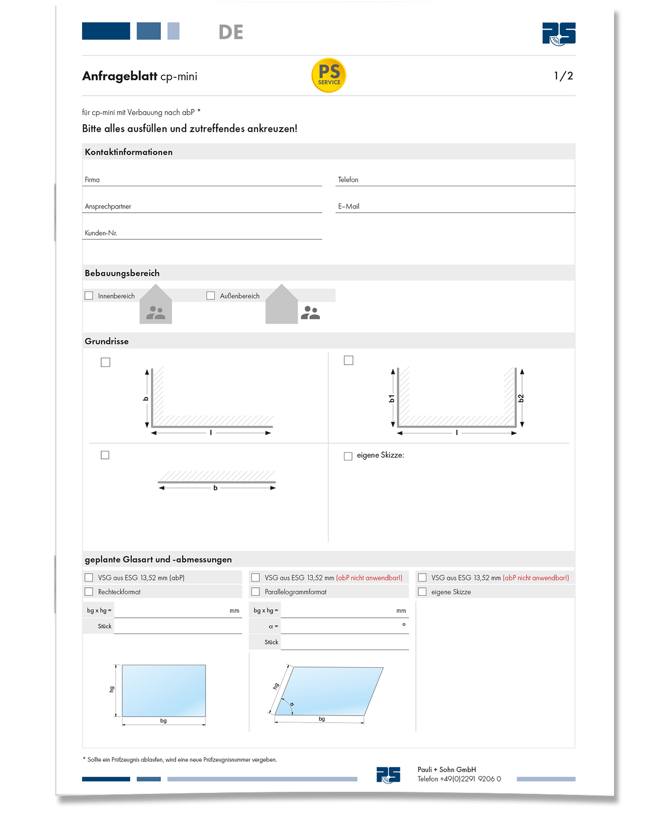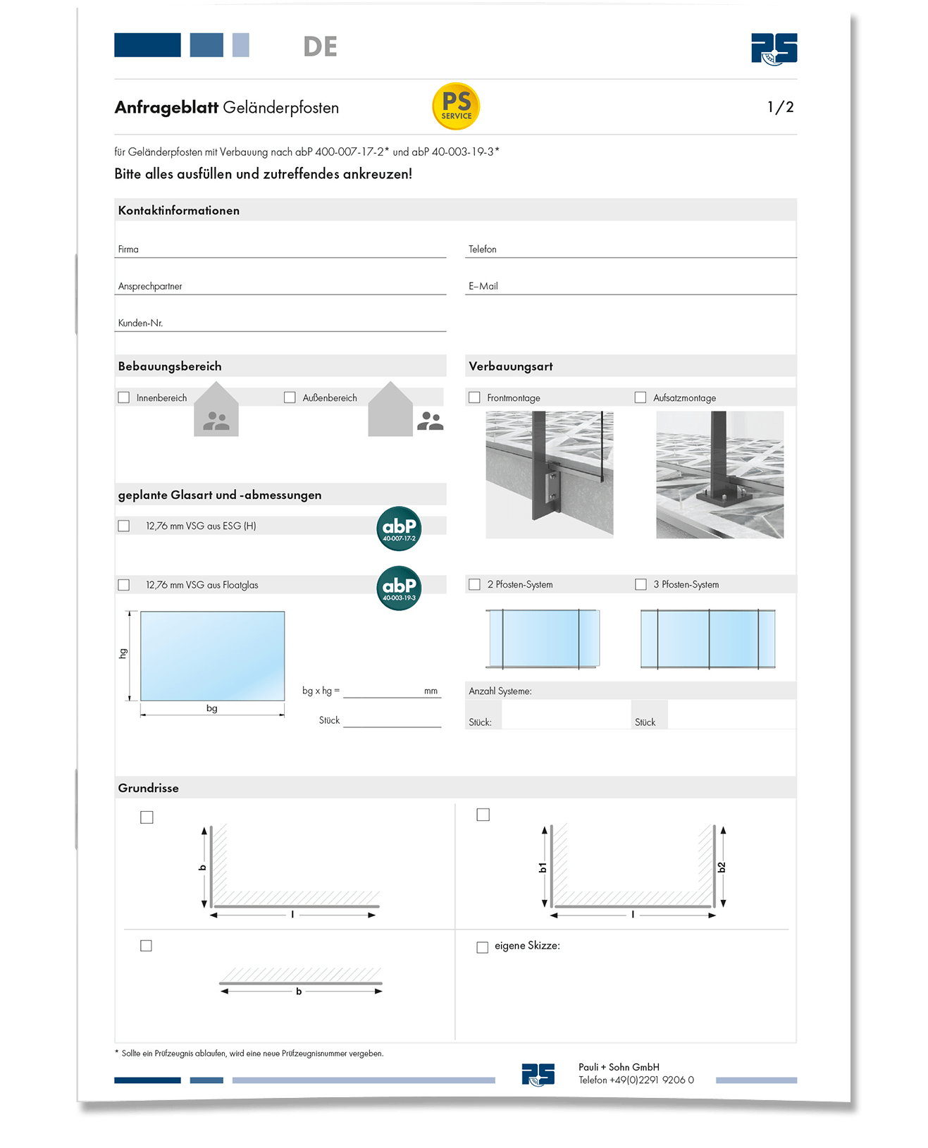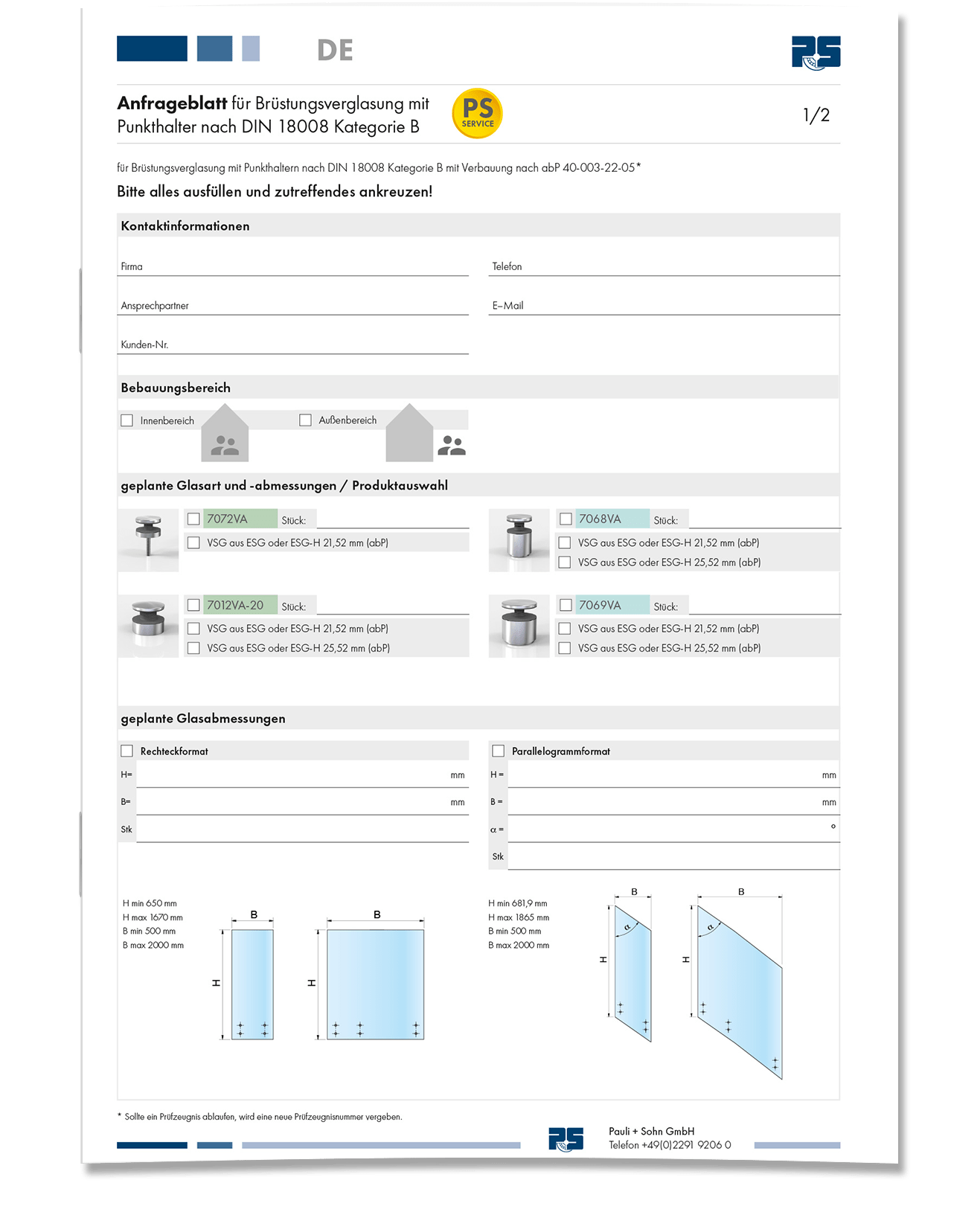 • Onderzoeksblad voor Balustrade -beglazing met puntarmaturen volgens DIN 18008 Categorie B