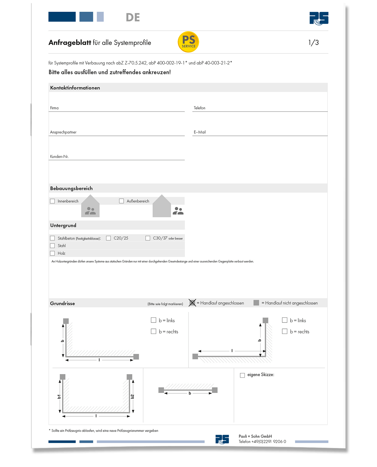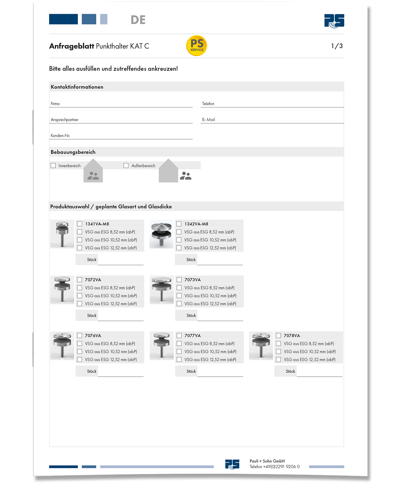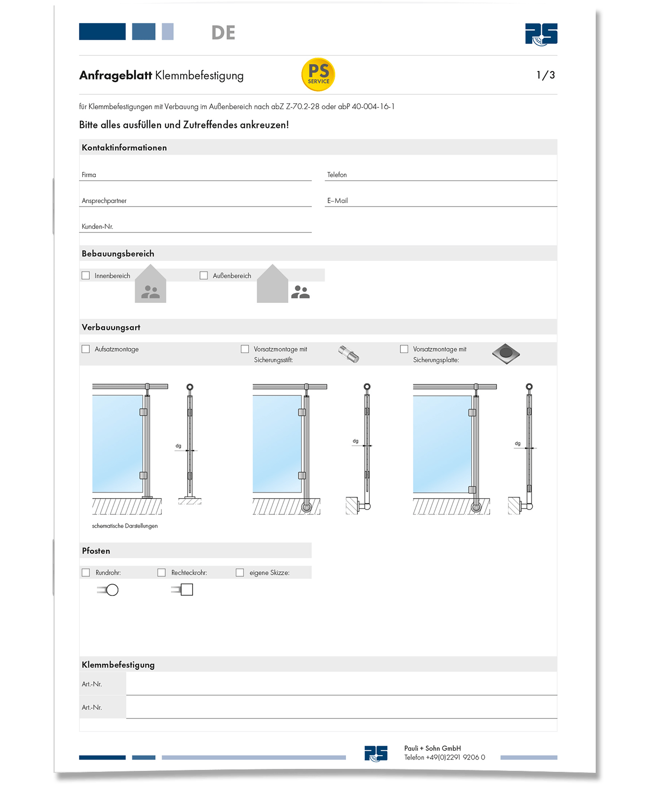 • Onderzoeksblad voor Balustrade -beglazing met puntarmaturen volgens DIN 18008 Categorie B