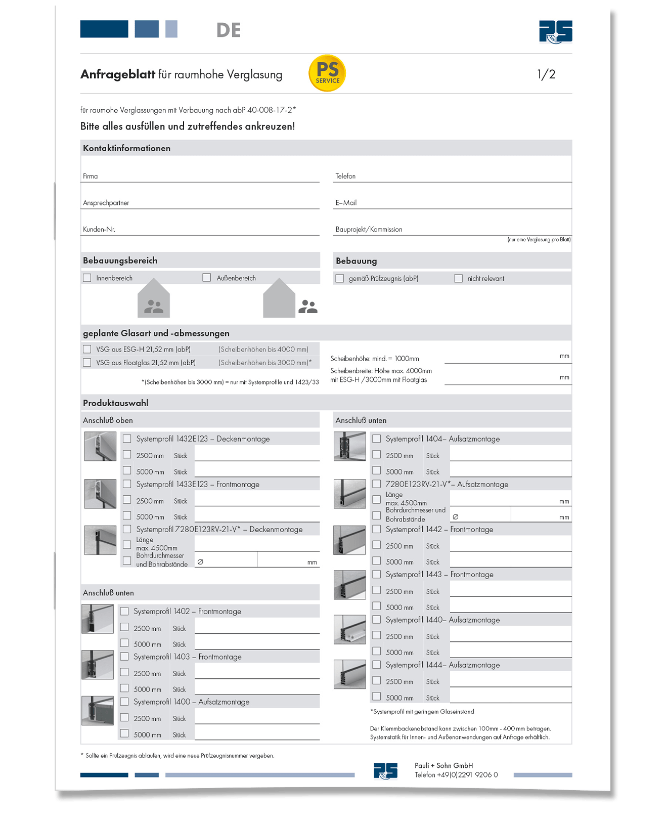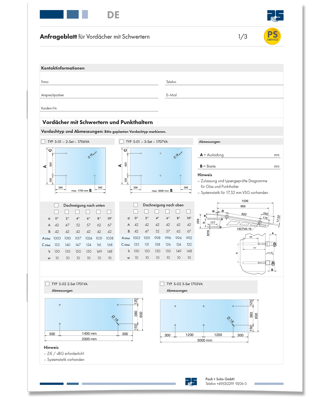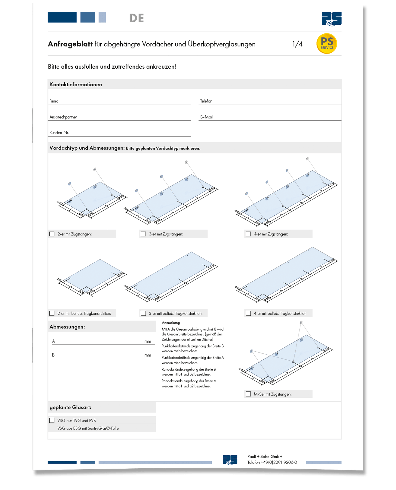 • Onderzoeksheet voor gesuspendeerde luifels en overhead beglazing
