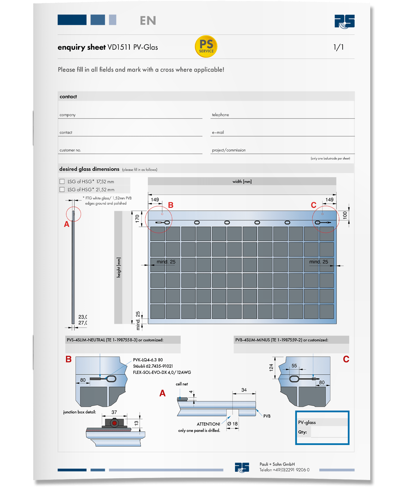 • Onderzoeksblad voor VD1511 PV -glas